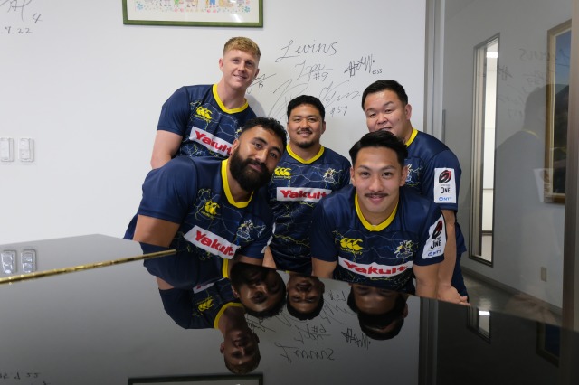 4月15日、群馬ヤクルト本店にヤクルトレビンズの選手とスタッフ7名が来社しました。