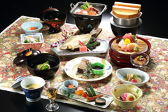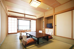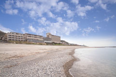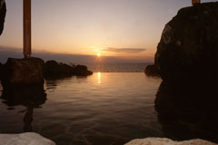 海の彩り・夕陽の輝き 日本海を一望のもと、美しい夕陽が見られる波打際の宿。 湯量豊富な渚の大露天風呂が男女別々にあり、潮の香りと心ゆくまで味わえる。