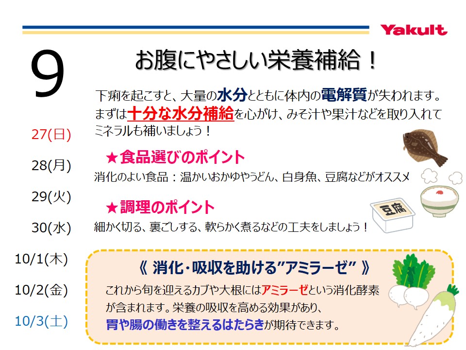下痢によって失われやすい栄養素を補給すること、また腸の働きを助ける食事を心がけるようにしましょう!