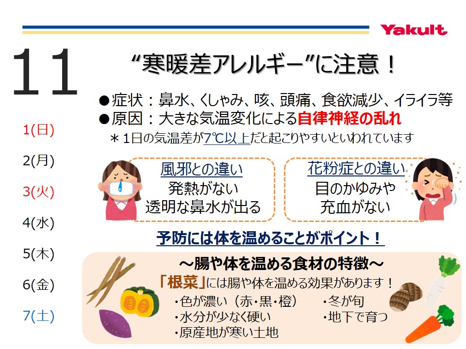 季節の変わり目で寒暖差が大きくなってくると、温度差によって咳や鼻水が出る、体がだるくなる・・・といった経験がありませんか?