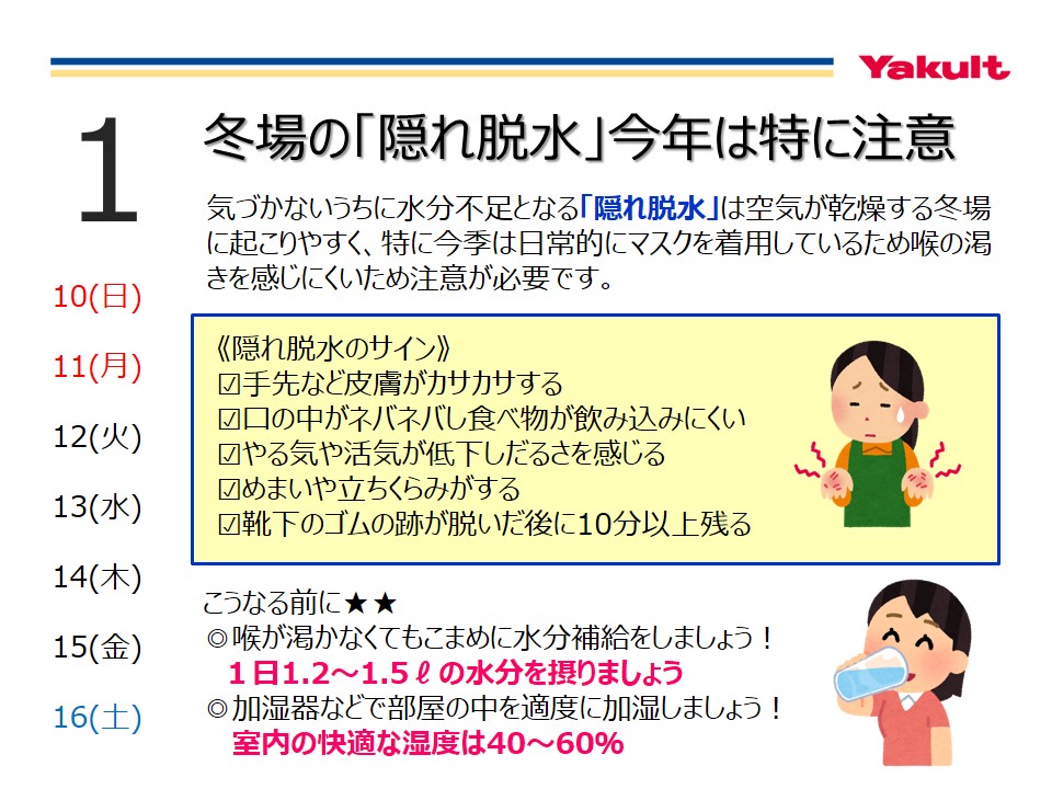 隠れ脱水に気を付けて冬場の健康づくりをしましょう!