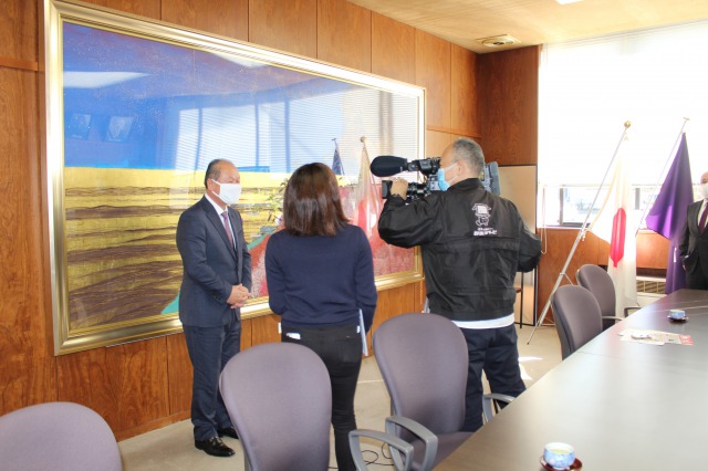 役場で行われた締結式では、伊能正夫町長より「見守り活動の協力は大変心強い」とご挨拶を頂戴しました。当日は群馬テレビも取材に来てくださいました。