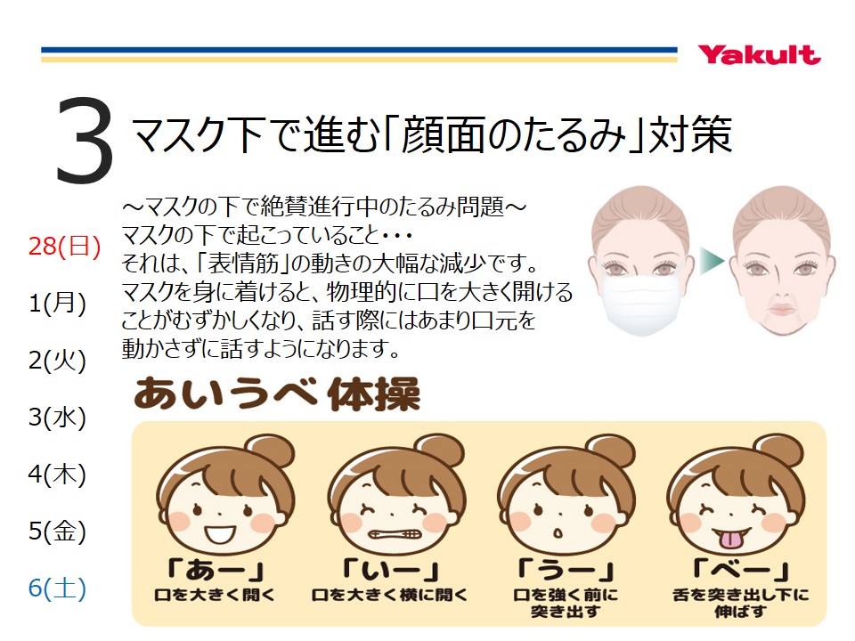 コロナ渦でのマスク生活・・。顔面のたるみ対策の為に、あいうべ体操で「表情筋」を動かそう!