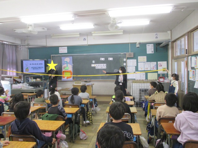 児童からは「腸の中にいる菌がたくさんいて驚いた」、「給食を残さないで食べようと思った」、「おなかの中には良い菌と悪い菌とどちらでもない菌がいることが分かった」、「小腸には病気から体を守るはたらきがあることを初めて知った」など一人一人が自分の言葉で感想を発表してくれました☆