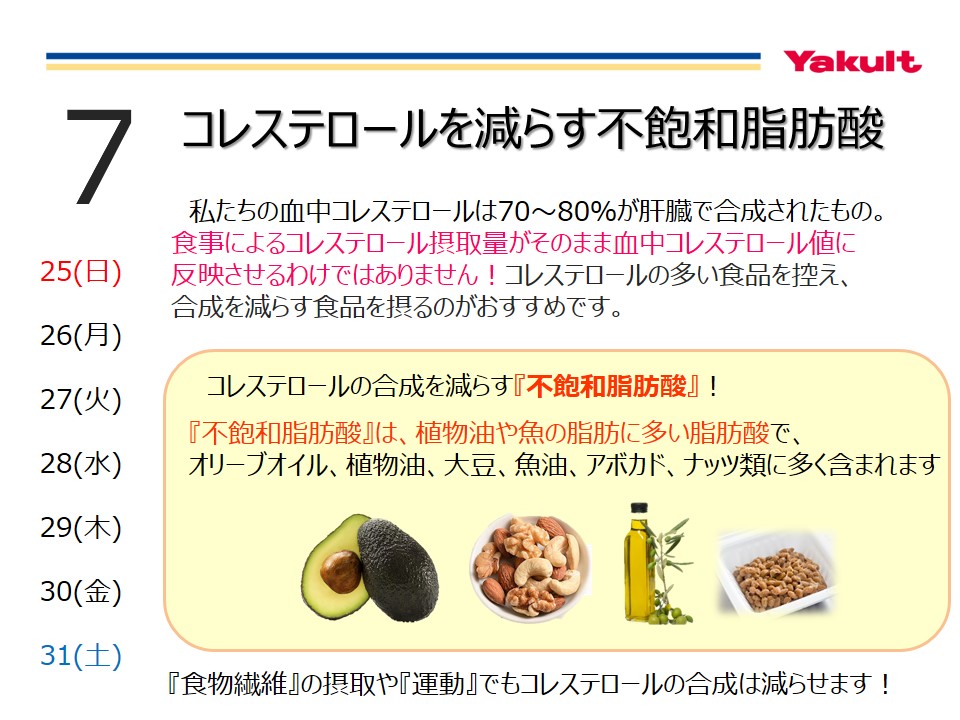 先週はコレステロールが多く含まれる食材についてでしたが、実はコレステロールの合成を抑制する食材もあります。