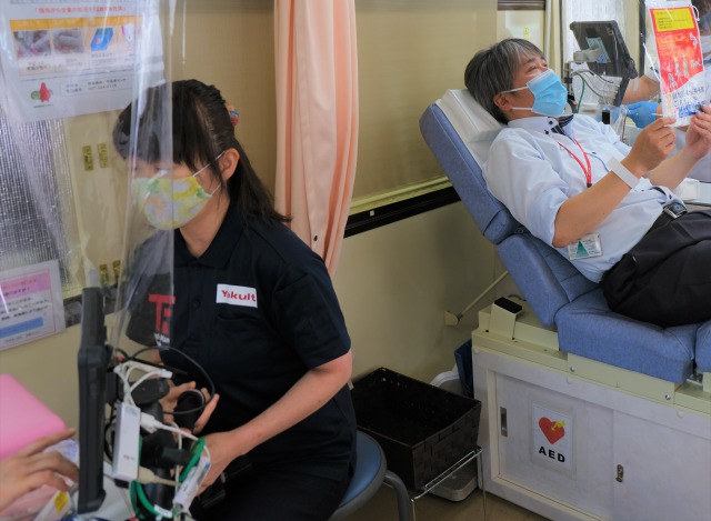 2021年6月29日に前橋市の群馬ヤクルト本店で従事者を対象にした献血を行いました。群馬ヤクルトでは1年に約2回献血バスにきていただいています。コロナ禍で献血バスの運行も減っている状況だそうです。今後も献血を通じて医療及び社会への貢献に取り組んで参ります。