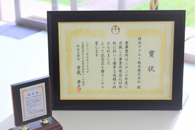 2020年度の事業所電話対応診断において優良事業所の認定をいただきました。これは公益財団法人日本電信電話ユーザー協会が抜き打ちの電話での問い合わせを行い評価をするものです。これからも電話対応を通して心のこもった対応に努めてまいります。