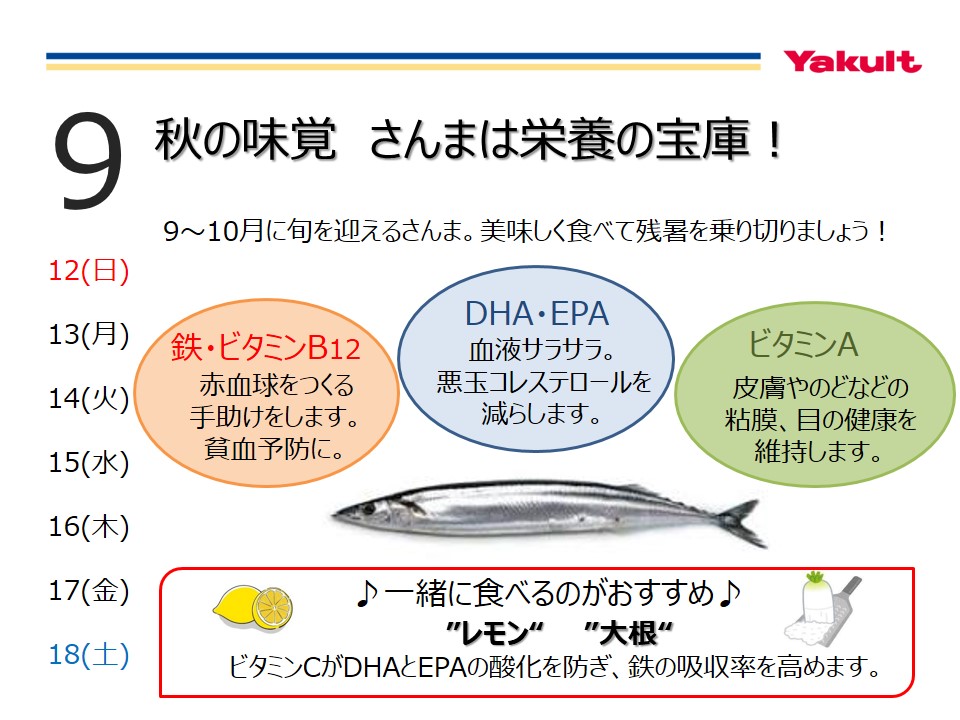 そんなさんまには、残暑を元気に乗り切るために必要な栄養素が豊富に含まれています♪