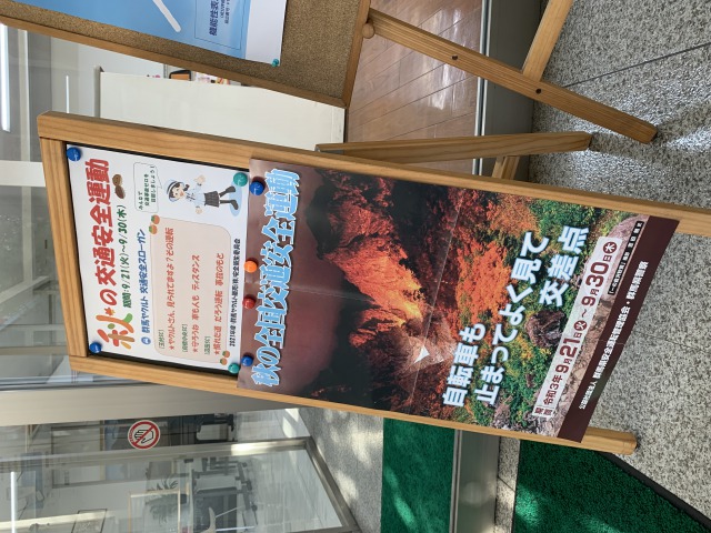 9月21日(火)~9月30日(木)の10日間は「令和3年秋の全国交通安全運動」期間です。群馬ヤクルトでは社内の交通安全委員会が定期的に研修会を行い、安心安全なお届けをするために意見交換しています。「令和3年秋の全国交通安全運動」の期間中は各拠点と本店出入り口にポスターを掲示して交通安全の意識を高めています。
