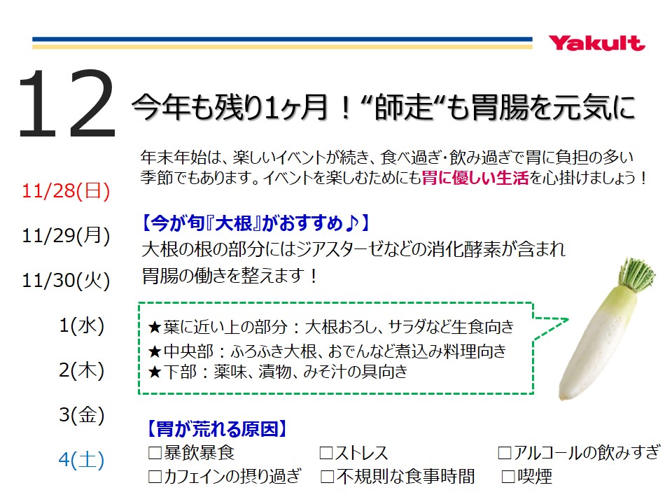 今年も残り1ヶ月!“師走”も胃腸を元気に