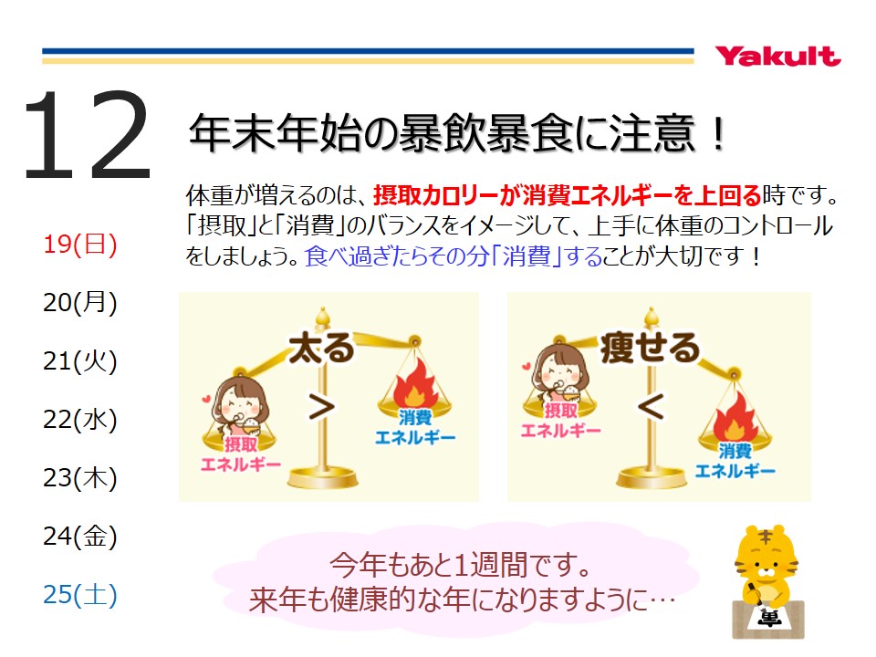 まずは、食べた量と消費した量を天秤にかけるイメージで、普段の生活を振り返ってみましょう!