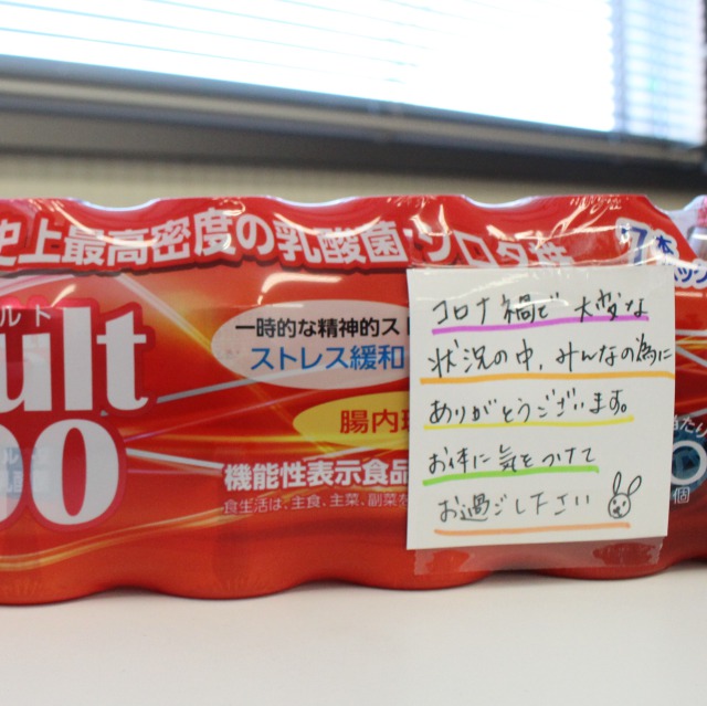 前橋保健所の職員さんが毎日遅くまで新型コロナウイルス対策の業務に当たっていることを聞いた弊社社員が企画しました。