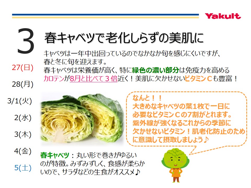 旬の野菜は美味しさだけでなく栄養価もアップしますので、この春は春キャベツで美しくなりましょう♪