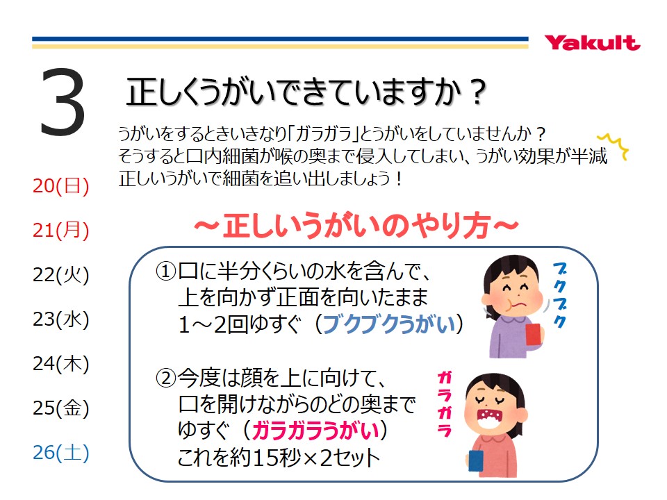 先週は手洗いのポイントをお伝えしましたが、実はうがいにもポイントがあるのです☝