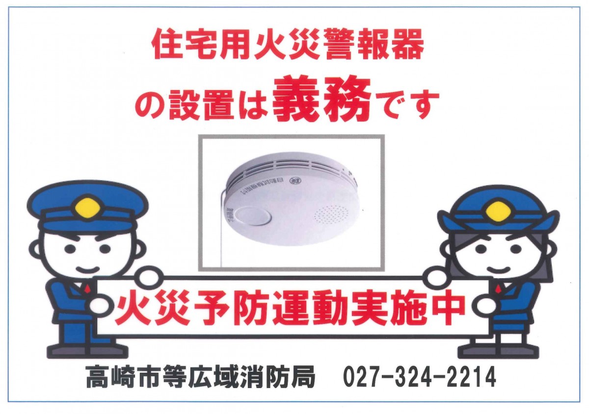 住宅用火災警報器の定期点検も定期的に行い、火の元には十分注意しましょう。