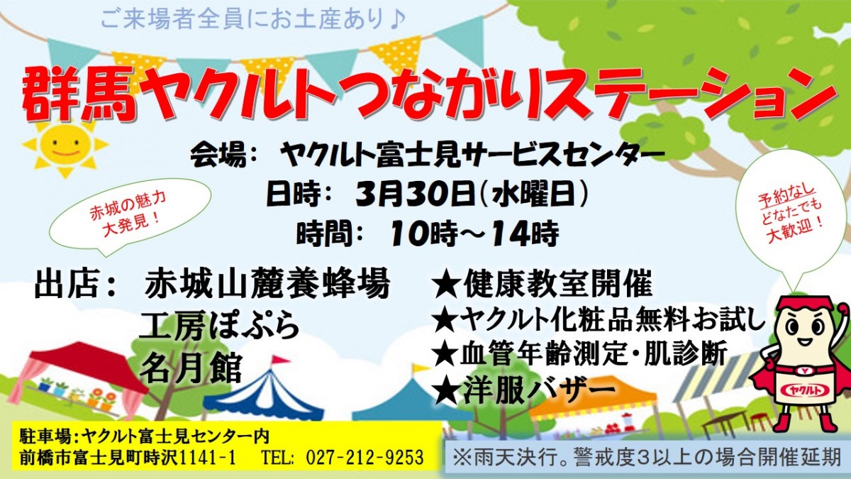 3月30日水曜日の10:00~14:00にヤクルト富士見サービスセンターでイベントを開催します。
