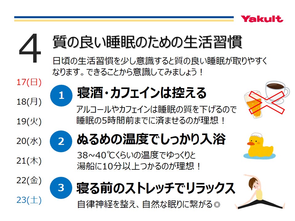 日頃の生活習慣を少し工夫、見直すだけでも質の良い睡眠にぐっと近づきます!