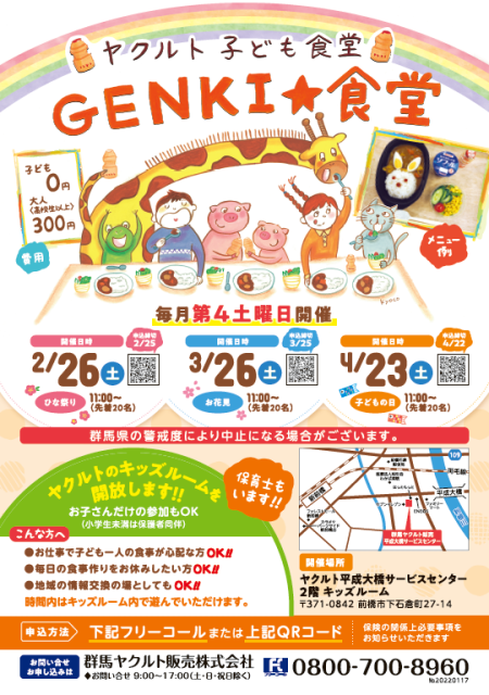 毎月第4土曜日に開催しているヤクルト子ども食堂“GENKI★食堂”を開催いたします!