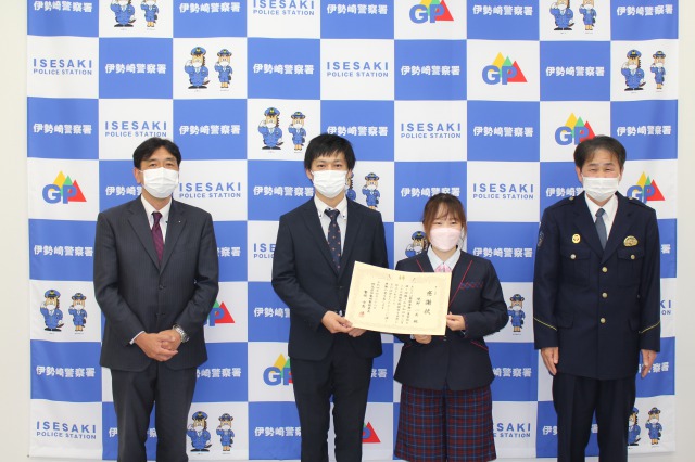 4月26日、伊勢崎警察署中島淳署長より、還付金詐欺を未然に防いだとして境野スタッフへ感謝状が授与されました。