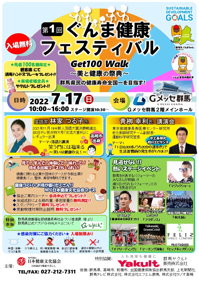 7月17日(日)Gメッセ群馬で開催される第1回ぐんま健康フェスティバルで来場の方にヤクルトプレゼントします。