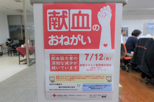 コロナ禍で献血が減っている状況の中、群馬ヤクルトの多くの方々に、ご協力していただけた事へ本当に感謝申し上げます。
