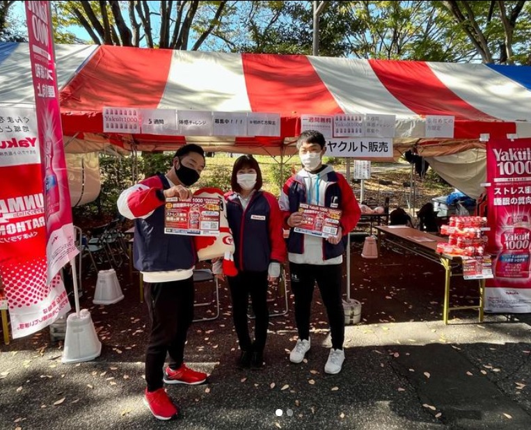 総合案内近くのブースでは、完走されたランナーへヤクルトの無料配布を実施しました。皆さん乾杯して楽しまれていました☺