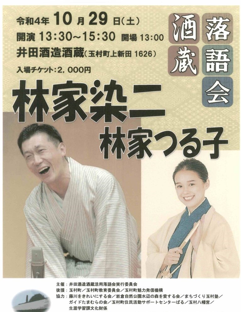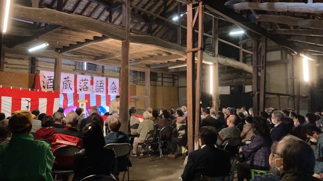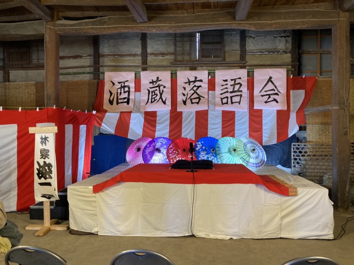 10月29日に玉村町で開催された落語会に商品提供しました。この会は、現在使われていない酒蔵を活用したもので、上方落語の3代目林家染二さんと高崎市出身の林家つる子さんが高座をつとめました。