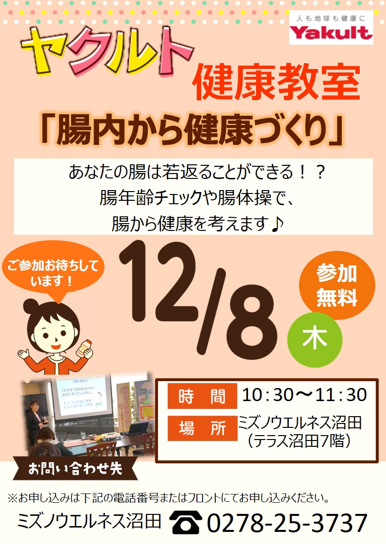 12月8日にミズノウエルネス沼田様で健康教室を開催します。