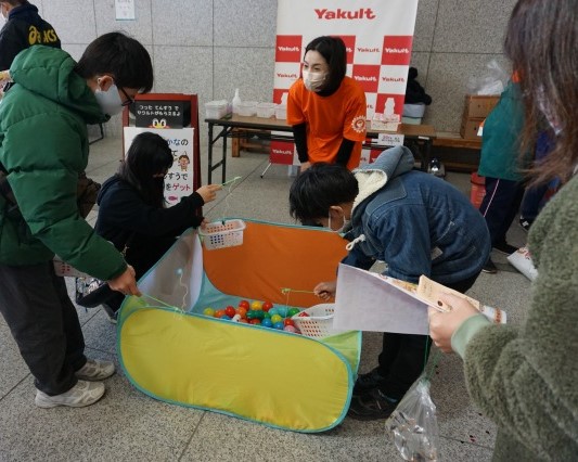 ヤクルトブースでは、GENKI★食堂の紹介やヤクルト容器を使った「ヤクルトde魚釣り」を行いました。
