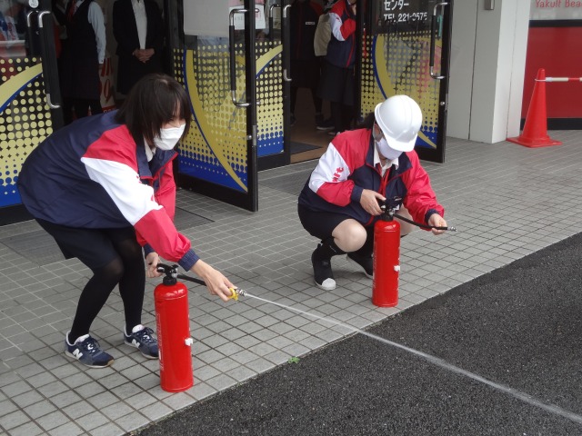 各拠点で消防職員さんに指導いただき、避難訓練や消火訓練を行っています。
