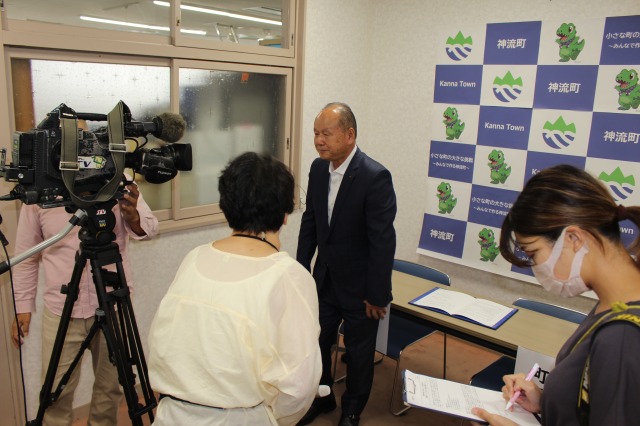 写真右 神流町田村利男町長