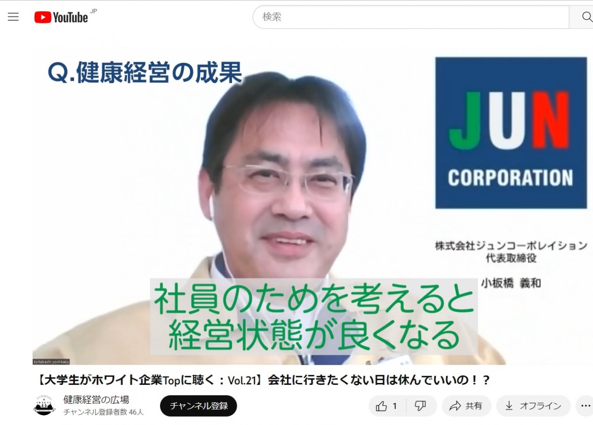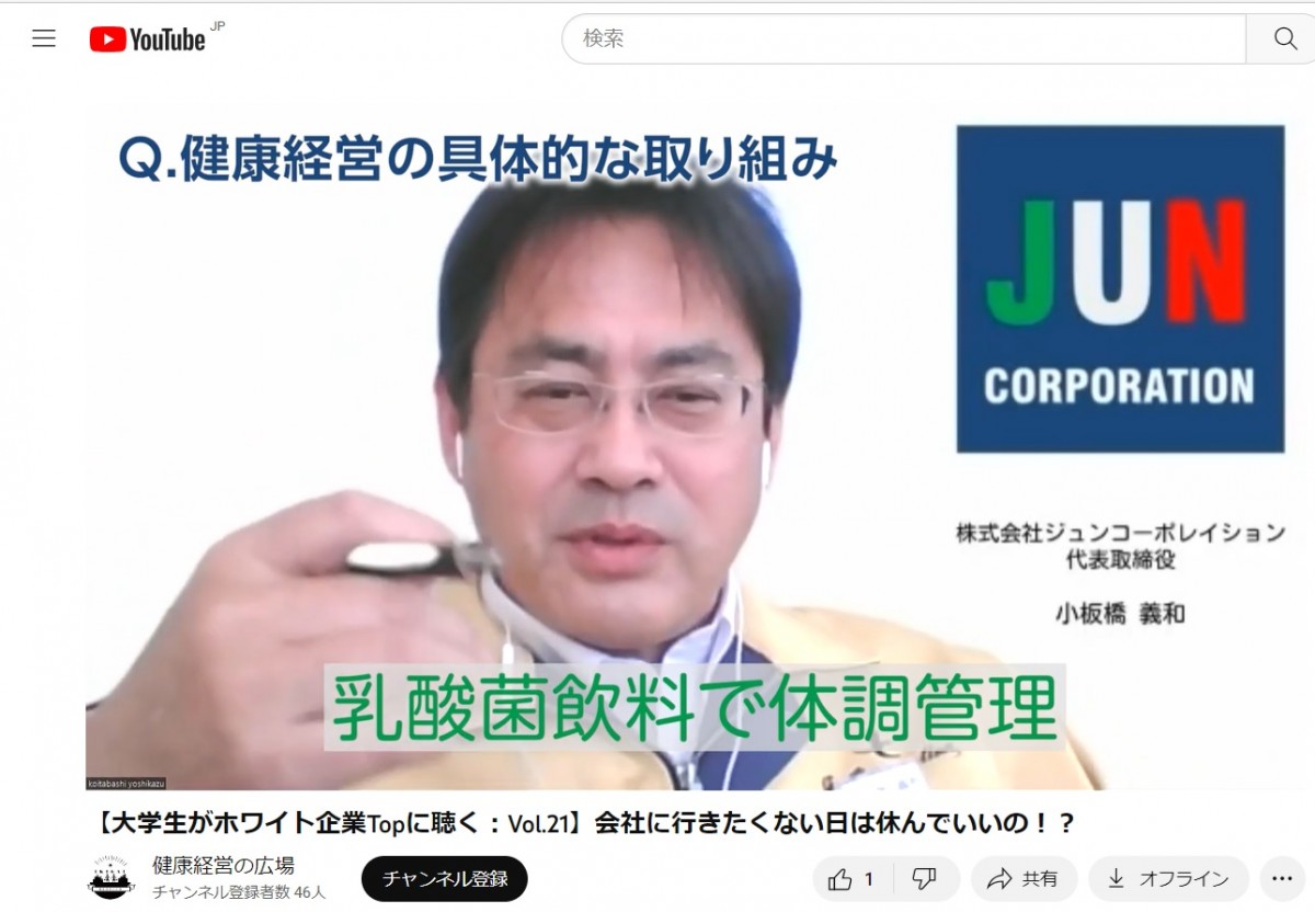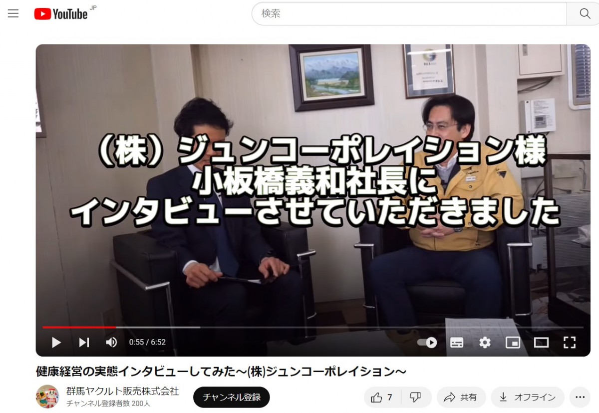 安中市の企業ジュンコーポレイション社長の小板橋様が、Youtube「健康経営の広場」のインタビューで、健康づくりにヤクルトを活用していることを紹介してくださいました!