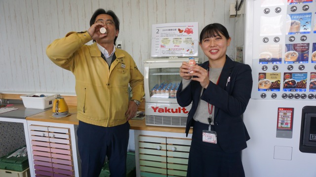 ジュンコーポレイション様では、従業員の方が毎日ヤクルトを飲めるようにシューケースを設置してくださり、健康づくりに役立てていただいています。