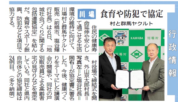 9月6日、川場村と当社で包括連携協定を締結いたしました。