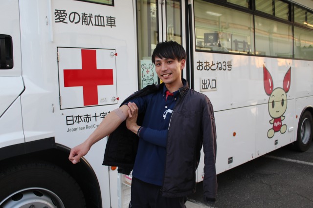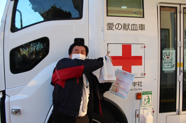 群馬ヤクルトでは、年に2回冬季と夏季に献血車両に本店に来て頂き献血を実施しています。