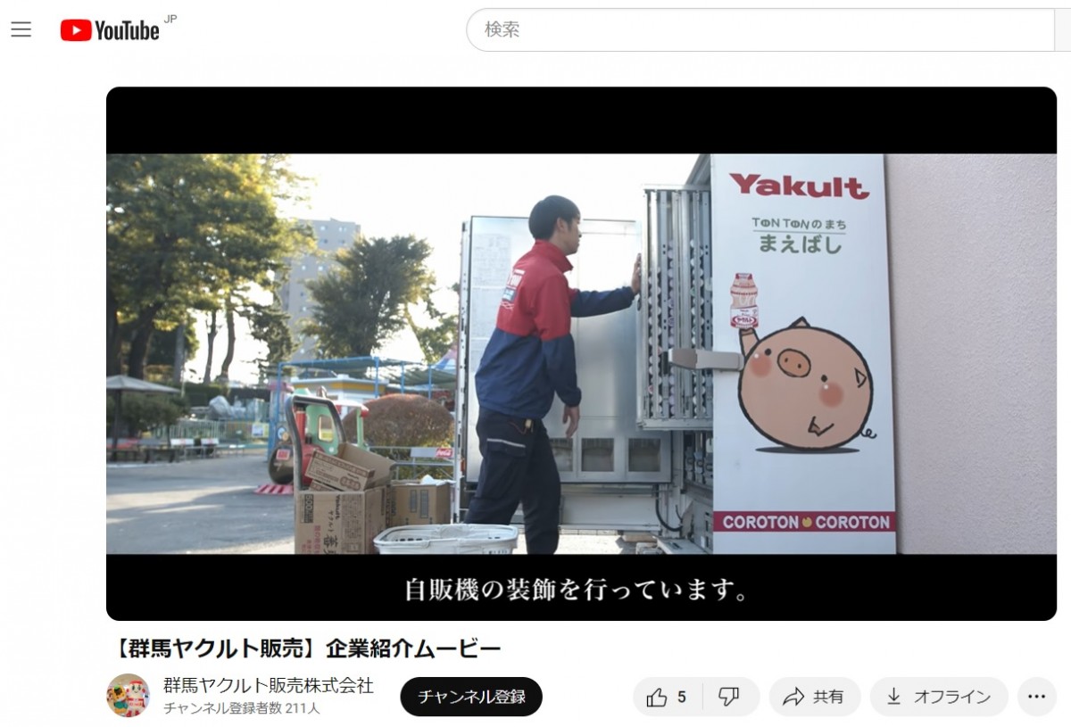 YouTube【群馬ヤクルト販売】企業紹介ムービー