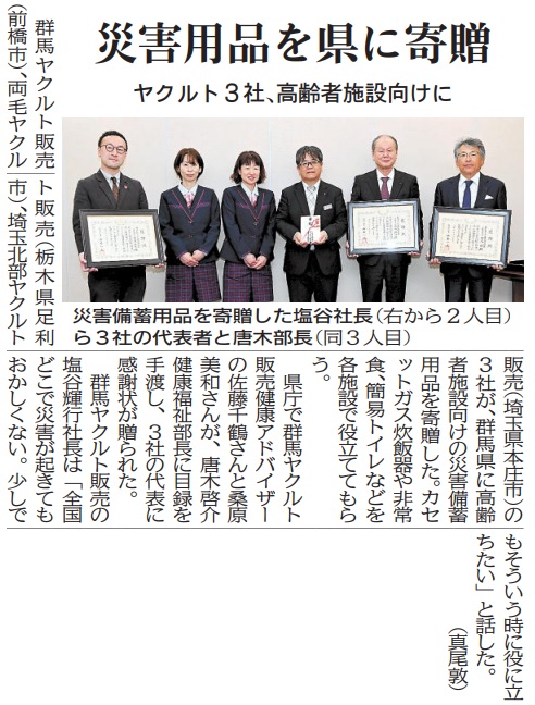3月26日、群馬県庁において福祉ヤクルト寄贈品受託式が開催されました。
