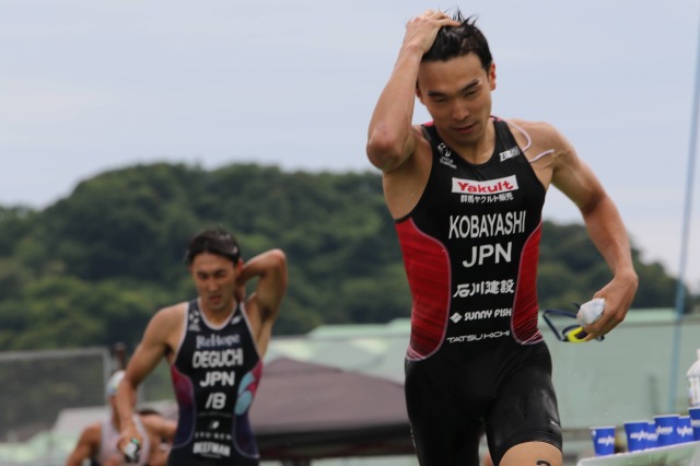 得意のスイムから先頭を譲らず、1位で終えることができ、
