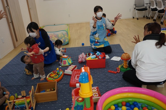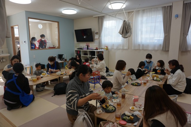 また、子どもたちはプレイスペースで、ボールプールや滑り台、積み木など、お友達と楽しく遊ぶ ことができ、その様子を眺めながら、お母さんたちは日頃の慌ただしさからほっと一息、温かい コーヒーでお母さん同士の交流を図る良い時間となりました。