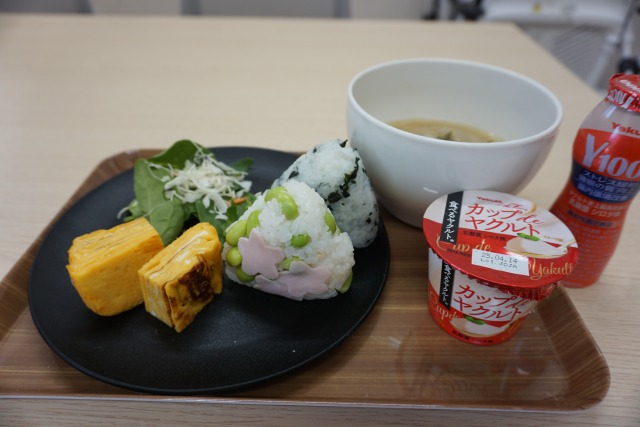 桜も満開を迎えたこの日のおにぎりは春を意識して桜をかたどったハムと枝豆のおにぎり!