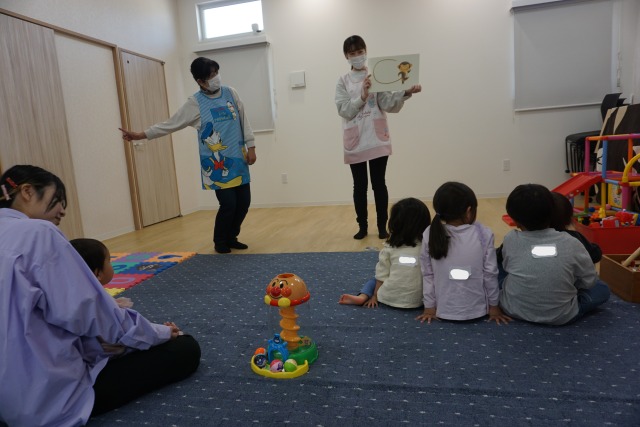 登場する様々な動物に目を輝かせ、真剣に聞いている姿がとてもかわいらしかったです。