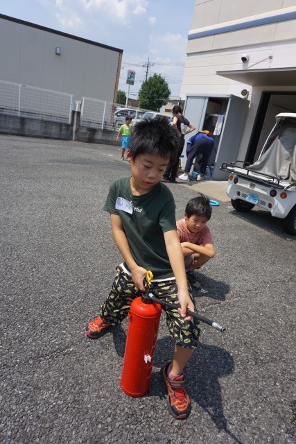 普段はなかなか使用する機会が無い消火器にこどもたちも興味津々でした。