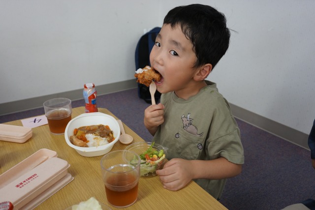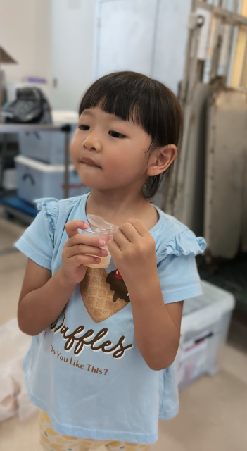 さらに、毎日猛暑が続いているので今回も、参加してくれたこどもたちに涼をとってもらいたいと、「ヤクルトアイス」をカップで提供しました。みんなおいしそうに食べる中、「これならうちでも簡単に作れる!」などとお母さんにもとても好評でした。