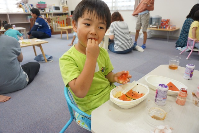 できたてアツアツのから揚げとみずみずしいスイカにこどもたちも大喜びでした。